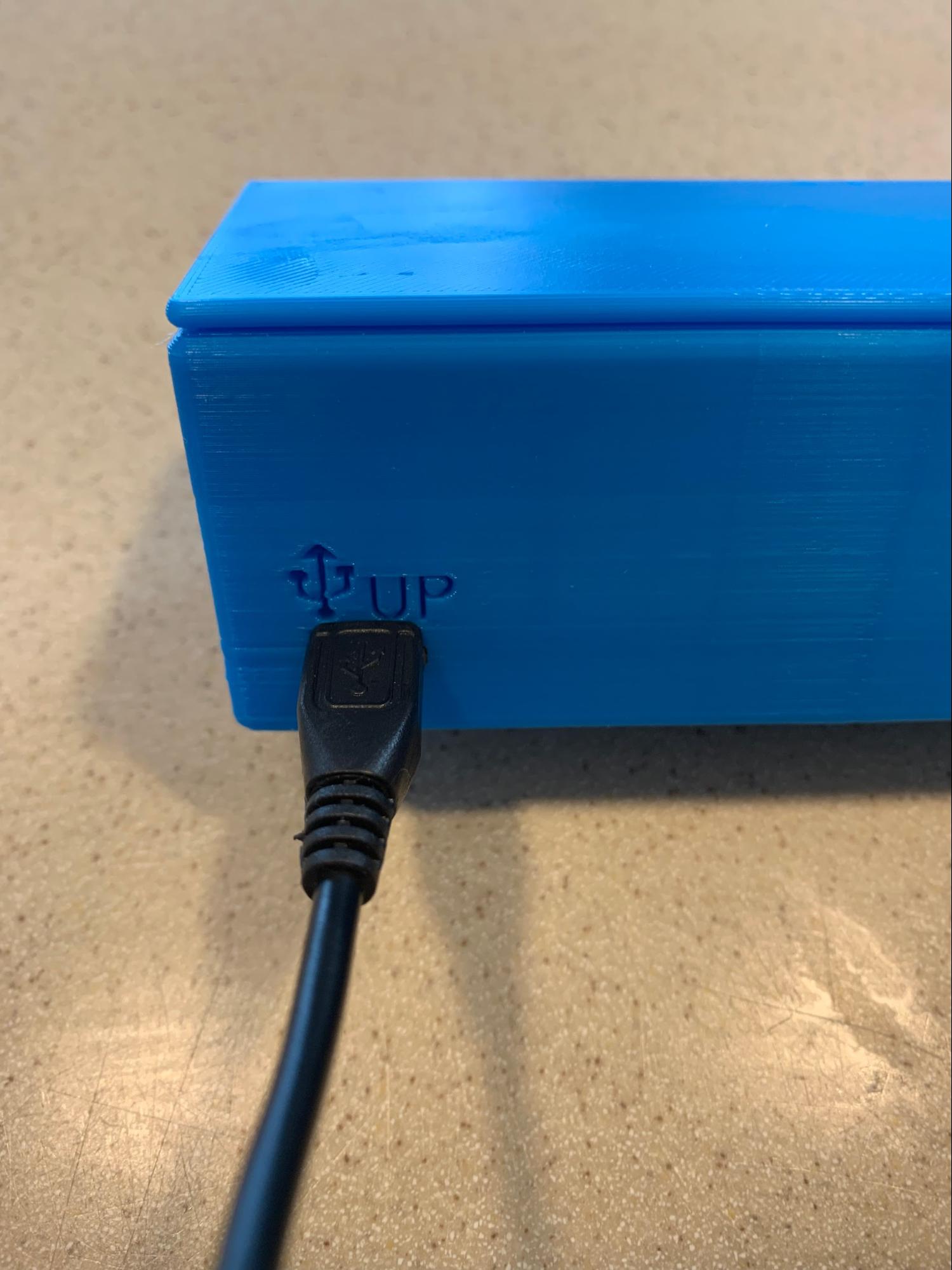 Make sure the USB symbol on the charging cord is visible and facing up (as shown above) before you attach the charging cord to the breathing device.